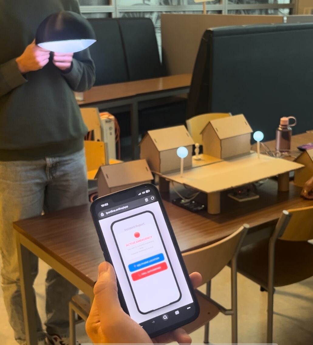 Samen met een groep zijn we momenteel aan het werken om de veiligheid van vrouwen in het donker te verbeteren. De doelgroep is hardlopende vrouwen in het donker, maar kan ook breder getrokken worden. We zijn bezig met een app die een knop heeft; als de vrouw zich onveilig voelt drukt ze hierop. De dichtsbijzijnde lantaarnpaal zal dan van 'normaal' licht naar alarm licht gaan: 1. om de (moglijke) aanvaller af te schrikken 2. om een onmiddelijk gevoel van veiligheid te geven aan de vrouw 3. om de omgeving te alarmeren.